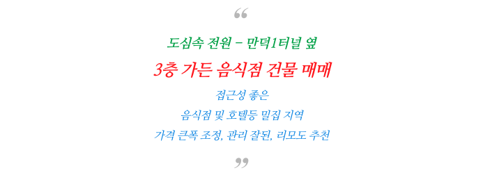 [ 급매 ] 만덕 가든 음식점 3층 건물 빌딩 급 매매 소개해 드리겠습니다.