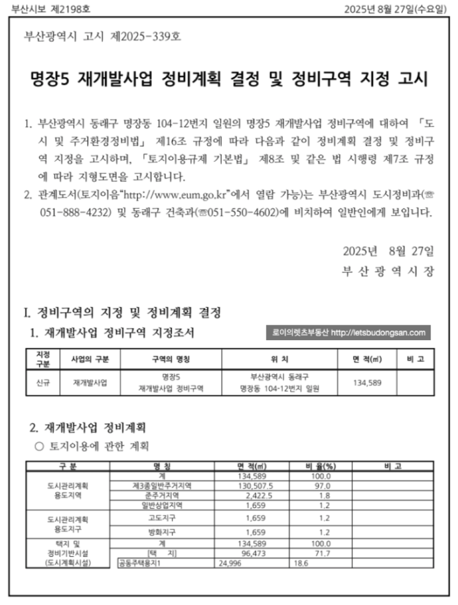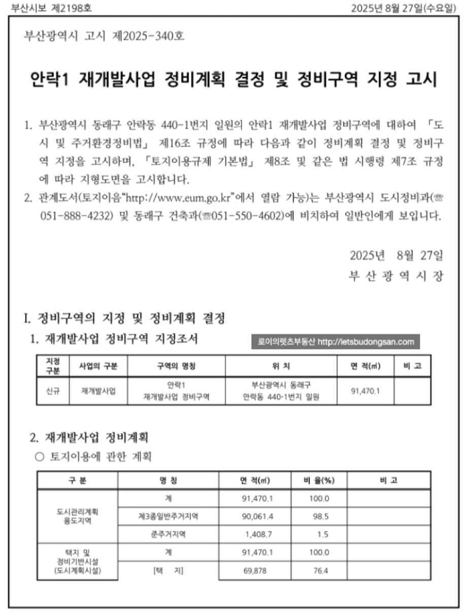 (부산 재개발) 안락1구역, 명장5구역 : 구역 지정 고시 & 매물