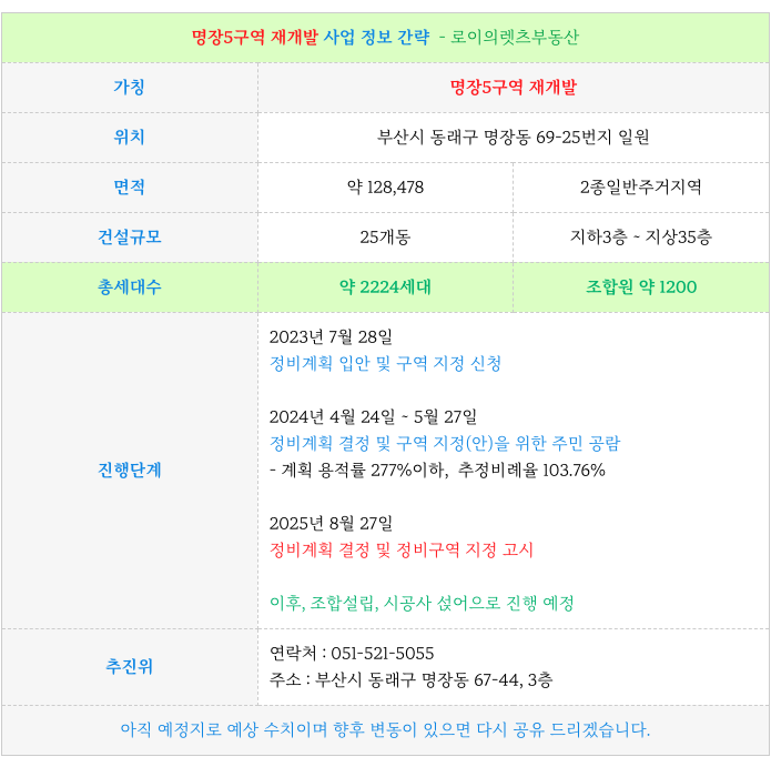[ 명장5구역 재개발 사업 정보 간략 ]