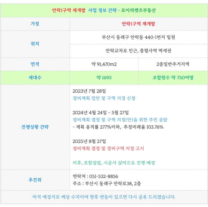 부산 전역 재개발에 대해 궁금하신 사항은 방문 또는 연락주시면 자세히 설명 드리겠습니다.