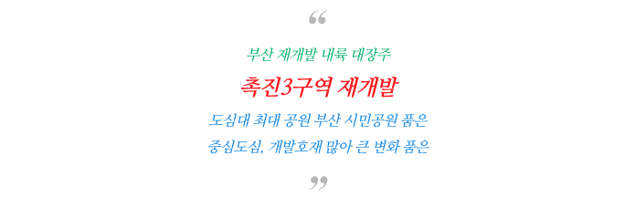 부산 내륙 재개발 대장주로 관심을 받고 있는 재개발 구역 입니다.