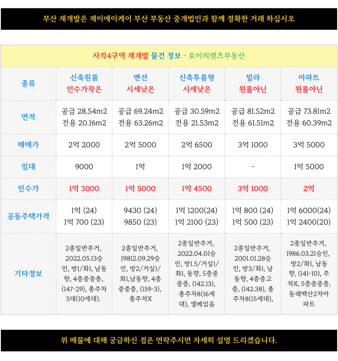 부산 전역 재개발에 대해 궁금하신 사항은 방문 또는 연락주시면 자세히 설명 드리겠습니다.