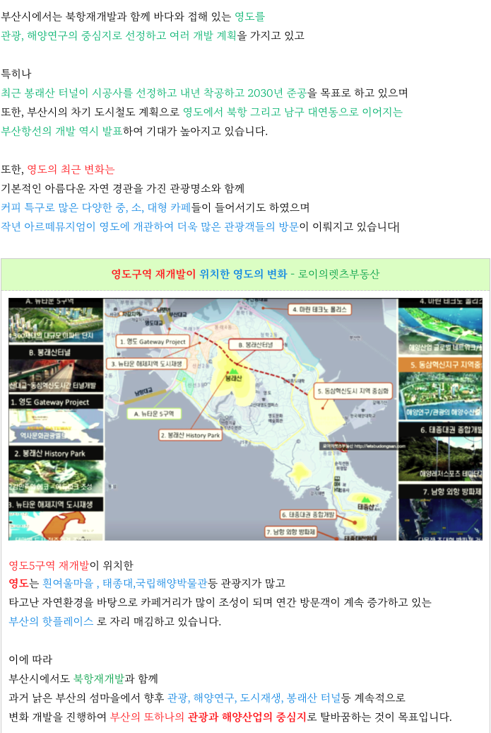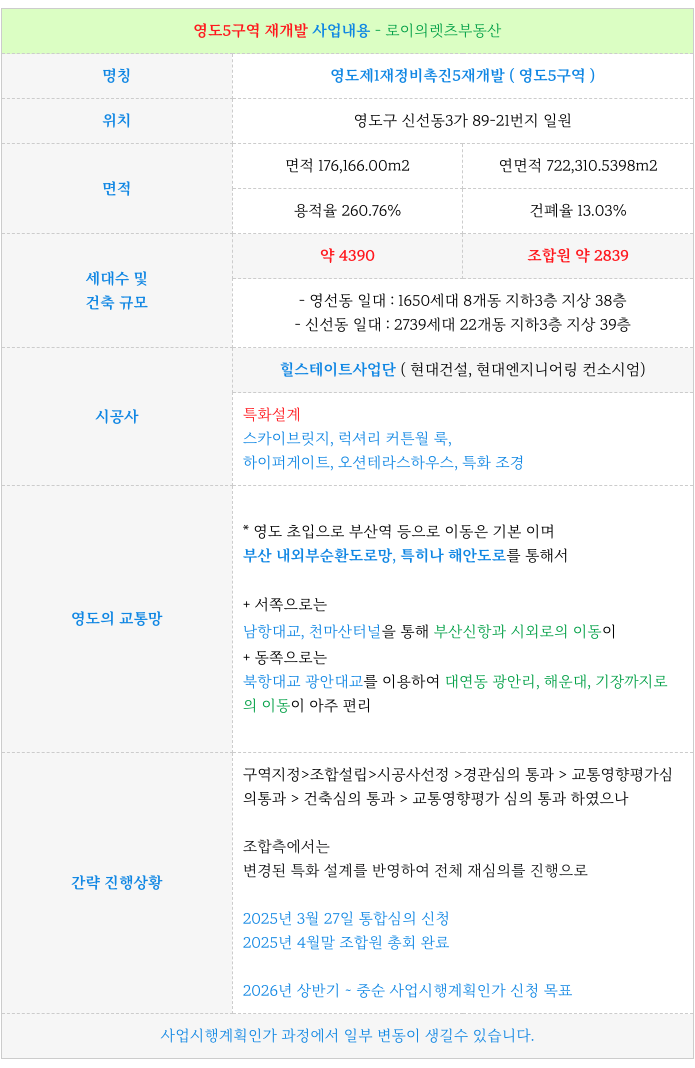 4. 구역 추가적인 상세 정보는 아래 페이지를 참고 부탁드립니다 : 영도5구역 재개발 :
