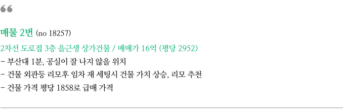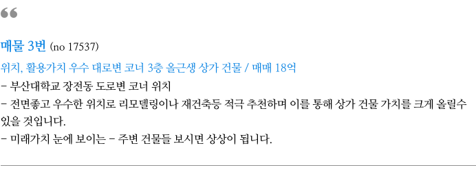 3) (강추) 위치 우수, 활용가치 우수한 대로변 코너 3층 올근생 상가 건물 ( 물건번호 17537 )