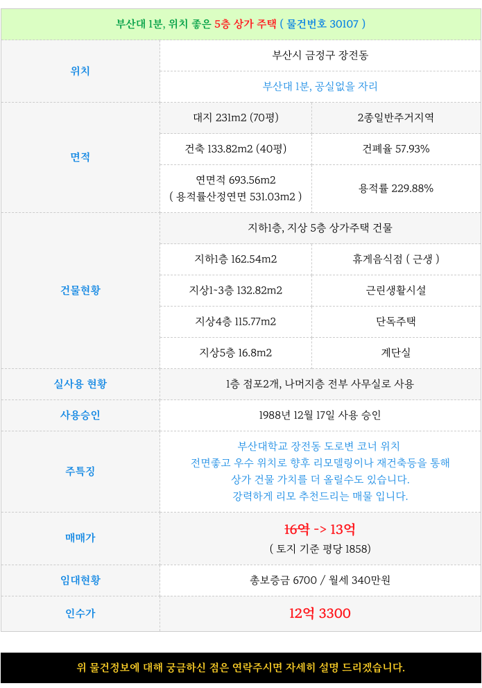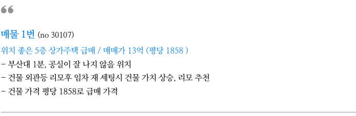 1) (급매) 부산대 1분, 위치 좋은 5층 상가 주택 ( 물건번호 30107 )