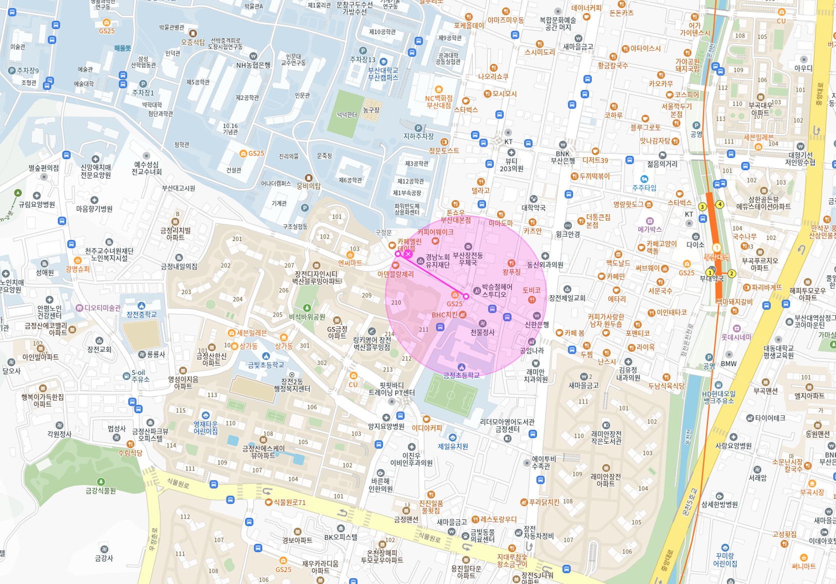 금강로를 기준으로 좌우로 기본 상권으로 두고 부산대 지하철역까지 상권이 이어져 있습니다.