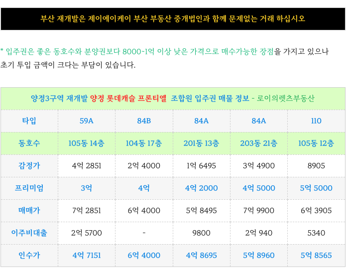 양정3구역 재개발 : 입주권 59, 84타입 매물