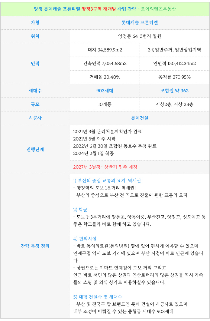 양정3구역 재개발 = 양정 롯데캐슬 프론티엘 : 조합원 입주권 매물 소개해 드리겠습니다.