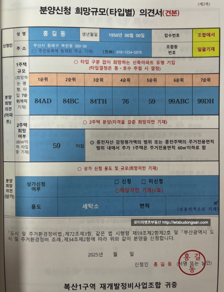 4. 복산1구역 재개발 : 조합원 분양 신청 안내, 고려사항 :