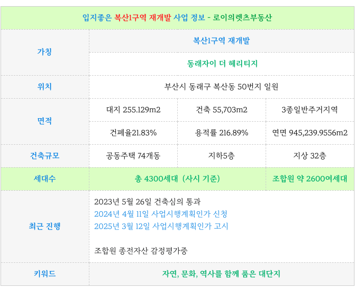 안녕하세요 로이의렛츠부동산 ( JAK 제이에이케이 부산 ) 입니다. 오늘은 조합원 분양신청앞둔 복산1구...