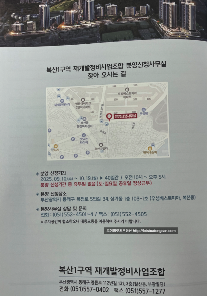 - 2025년 9월 10일 (수) ~ 10월 19일 (일) : 오전10~오후5시 : 조합원 분양 신청 진행중