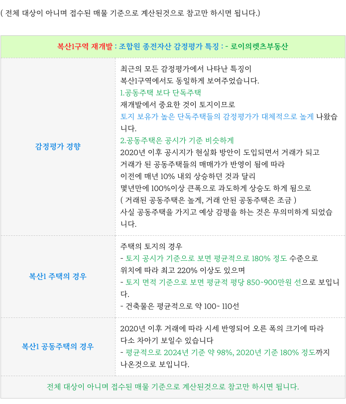 3. 복산1구역 재개발 : 통지된 조합원 감정평가 특징 체크 :