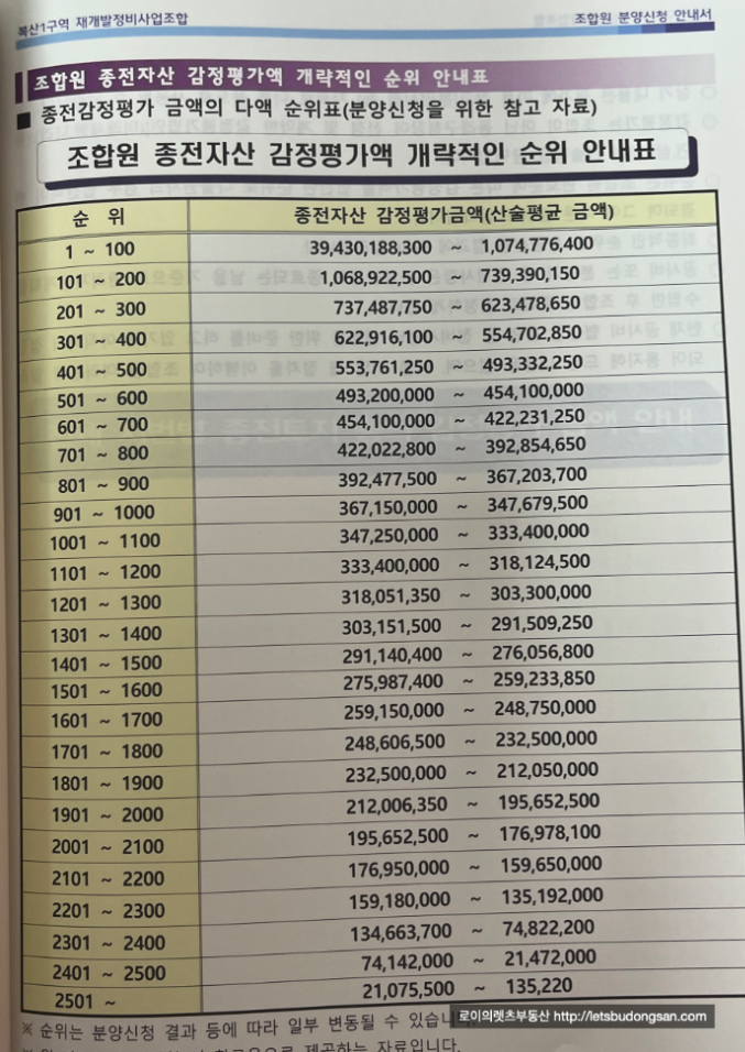 복산1구역 조합원 감정평가 특징과 분양신청 부분에 초점을 맞추어 내용을 전달드리며