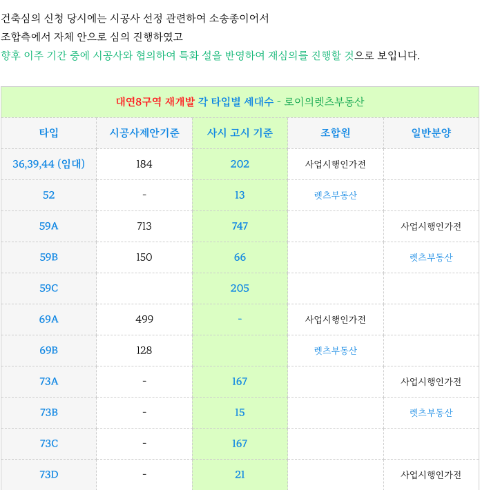 2. 대연8구역 재개발 : 각 타입별 세대수 (사시기준) :