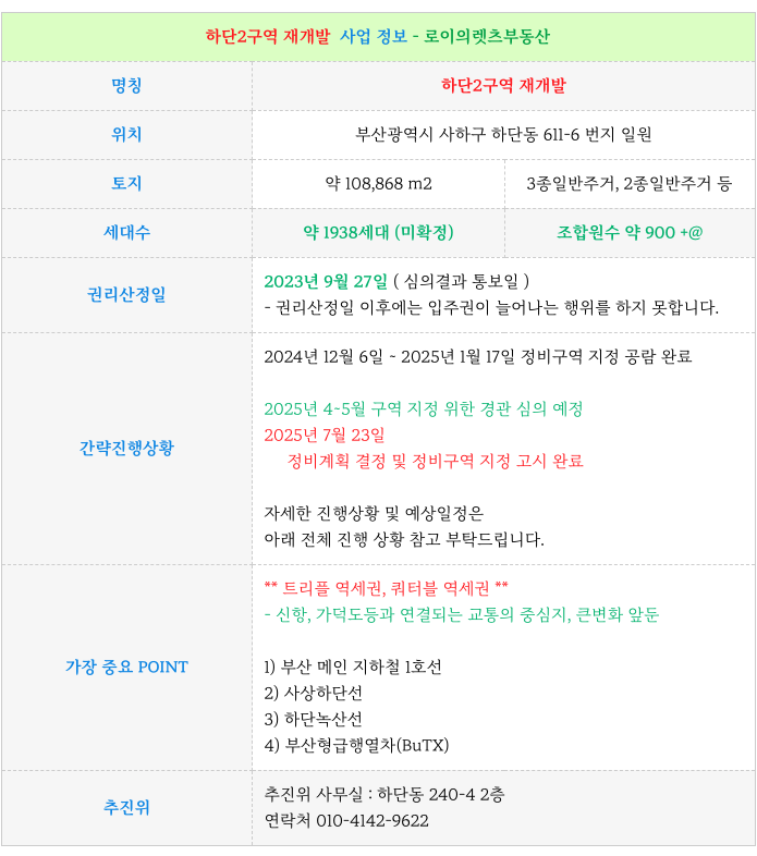 1. 하단2구역 재개발 : 사업 요점 간략 :