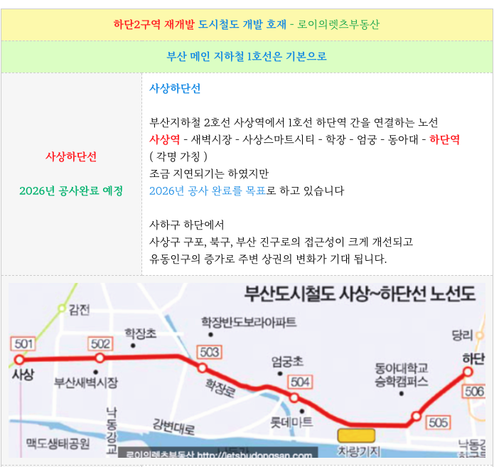 3. 하단2구역 재개발 : 하단역 도시 철도 개발 호재 :