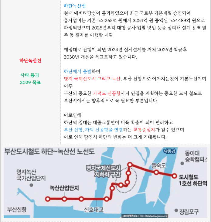 하단역은 도시철도 개발호재를 품고 향후 서부산의 중심 교통 환승 센터로의 변모를 예정하고 있습니다.