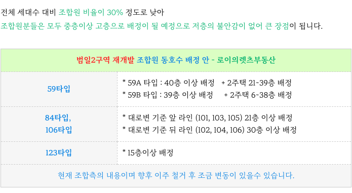 2. 타입별 세대수 + 조합원 동호수 배정 : 범일2구역 재개발 :