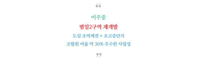 일반 상업지 높은 용적률로 조합원 비율 불과 약 30%밖에 되지 않는 우수한 사업성을 가지고