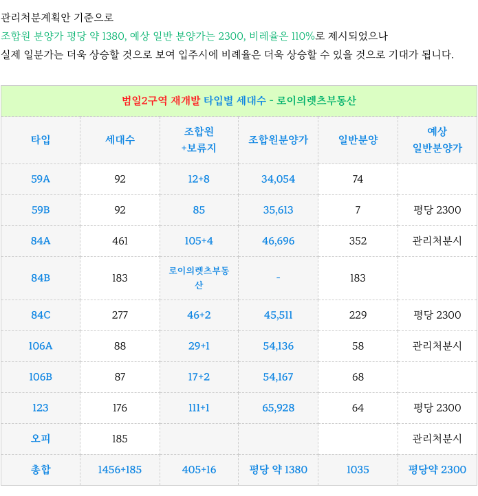 범일2구역 재개발 : 타입별 매물 + 간략한 입지, 특징