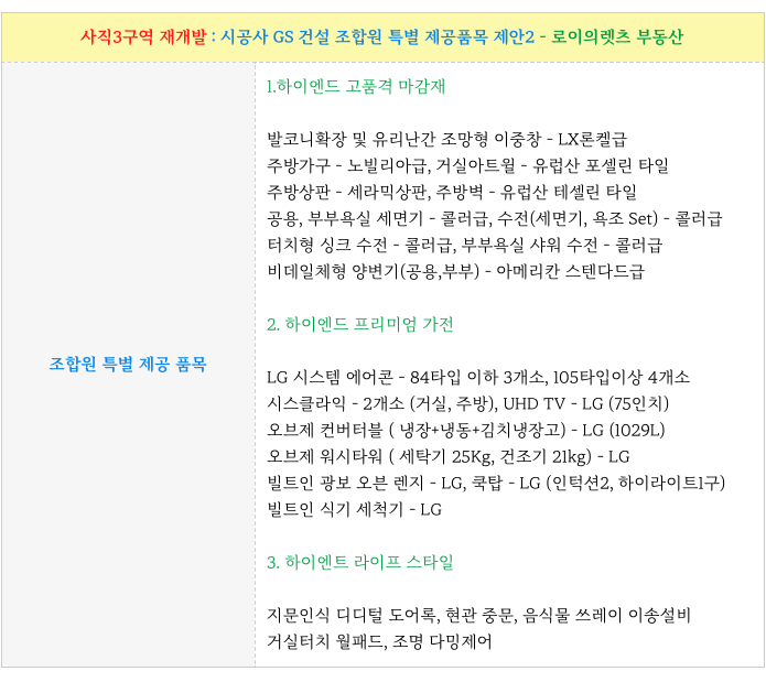 3) GS건설 조합원 특별 제공 품목