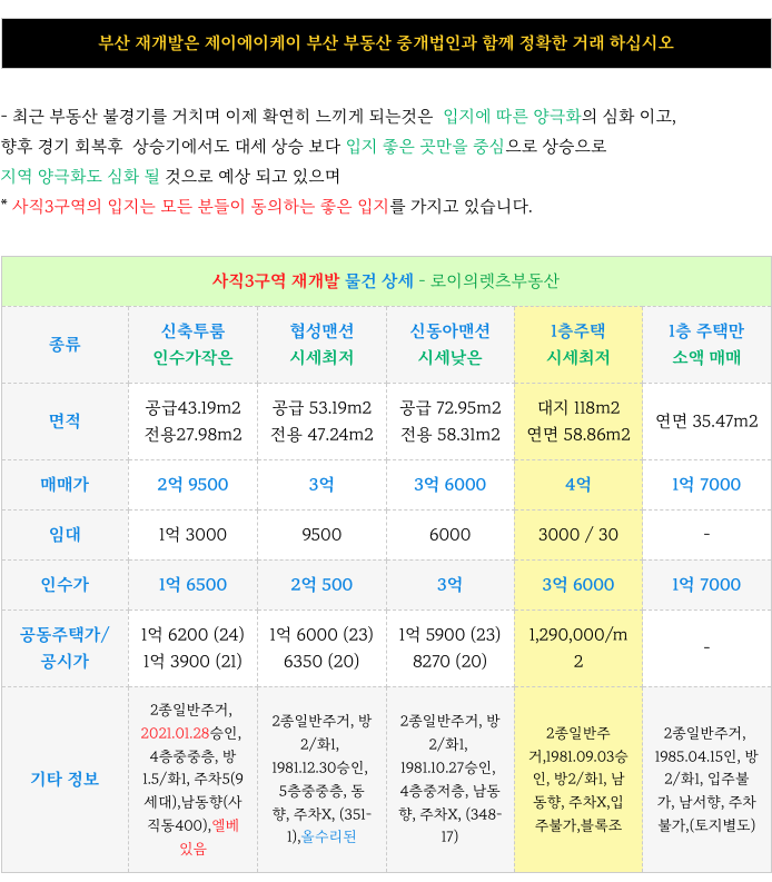 안녕하세요 로이의렛츠부동산 ( JAK 제이에이케이 부산 ) 입니다. 오늘은 입지좋고 시세좋은 사직3구역 ...