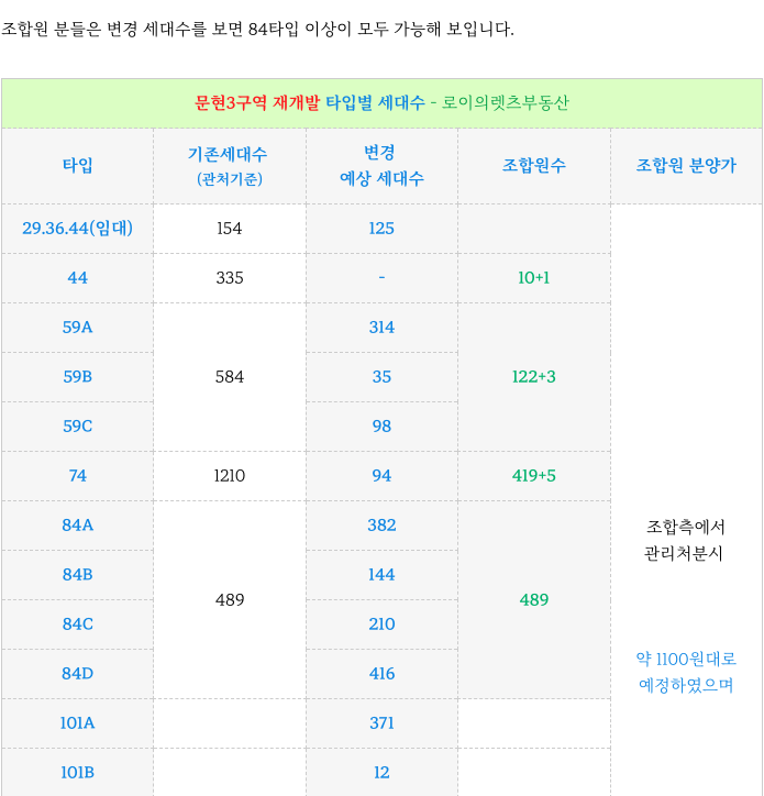 조합원 분들의 의견을 수렴하여 설계 변경과 이에 따른 타입별 세대수 변경을 진행중에 있으며
