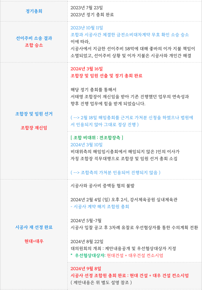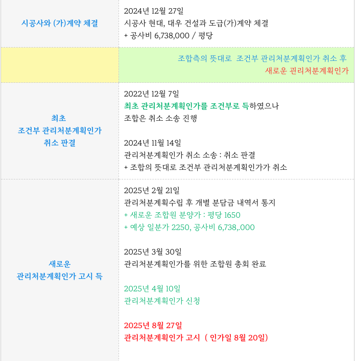 1차 관처를 앞두고 조합 내부 문제로 인해 반복된 조합장 선거등 다소 진행에 어려움이 있었고