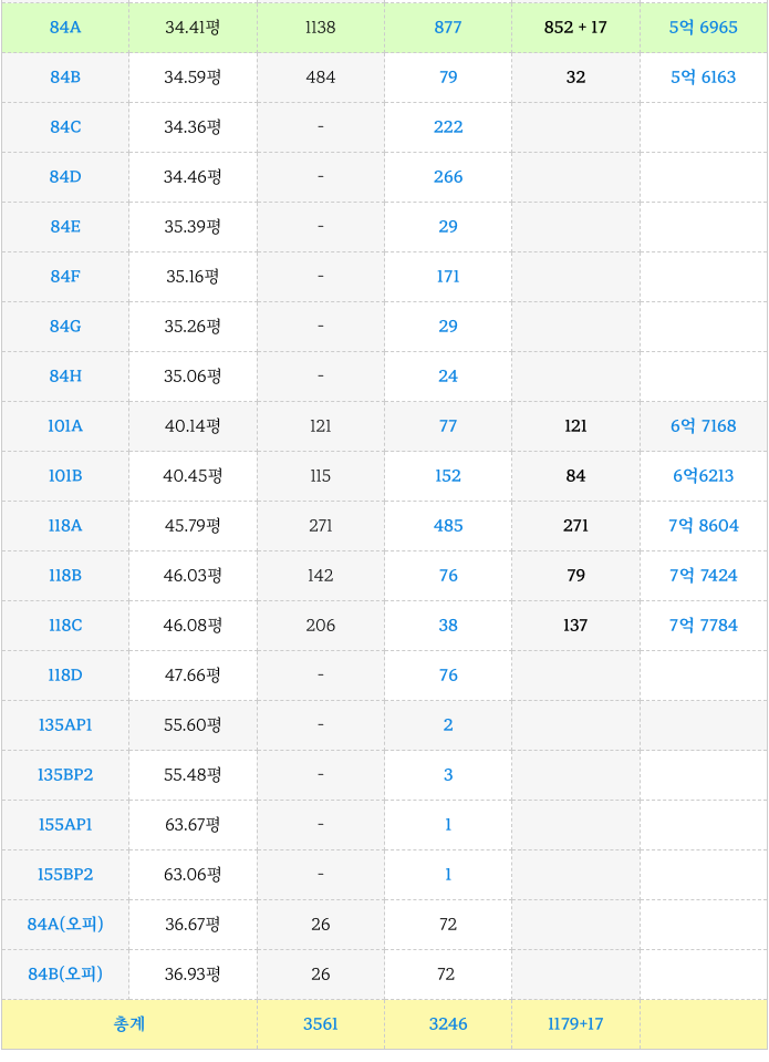 1. 괴정5구역 재개발 : 타입별 최저 매물 소개 :