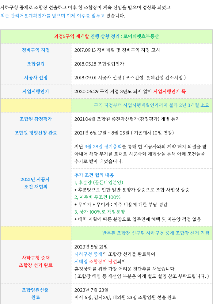6. 괴정5구역 재개발 : 사업 진행 사항 체크 :