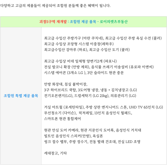 2) 시공사 조합원 특별 제공 품목
