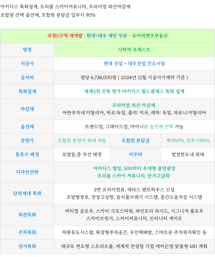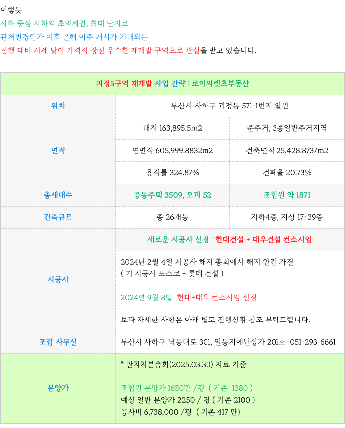 5. 괴정5구역 재개발 : 사업 특징 간략 정리 :