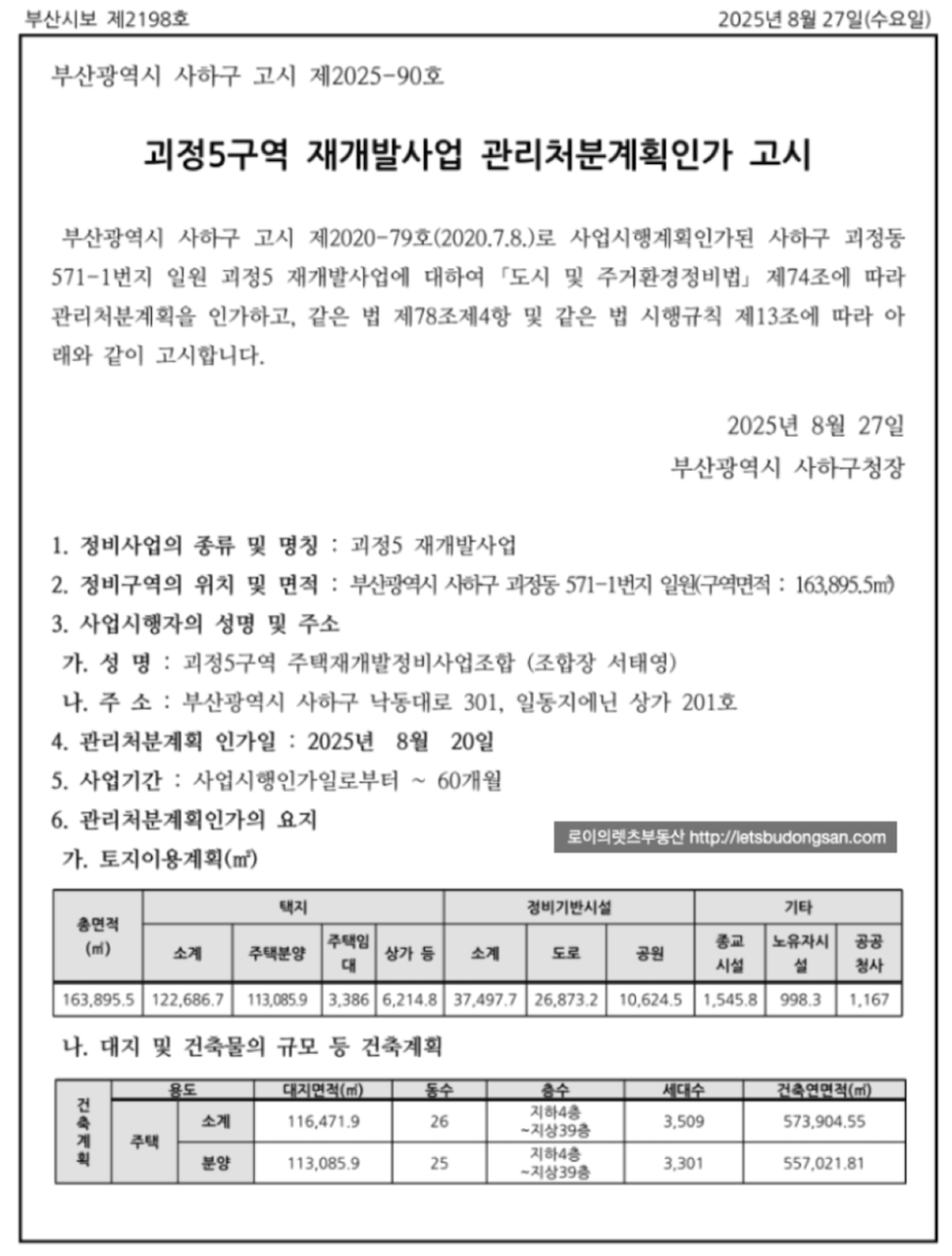 2025년 8월 27일 관리처분계획인가 고시를 받으며