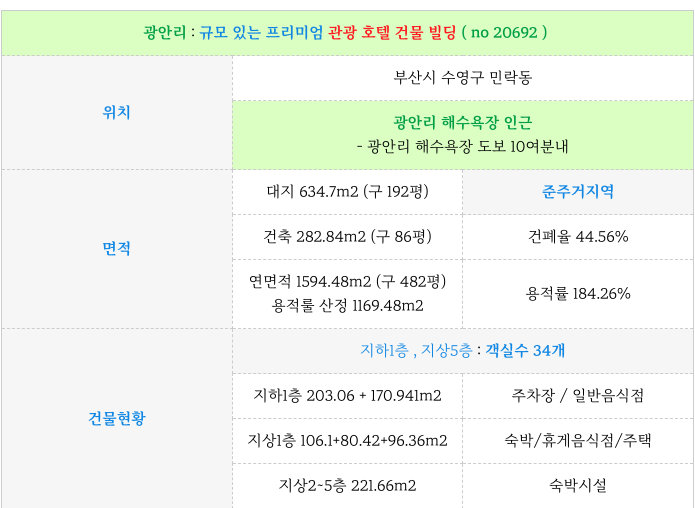 광안리 : 45개 객실 : 규모있는 프리미엄 관광 호텔 건물 빌딩 매물 상세 제원 소개해 드립니다.