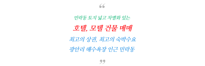 부산 광안리 + 민락동 + 토지넓은 + 호텔, 모텔 상가 건물 매매
