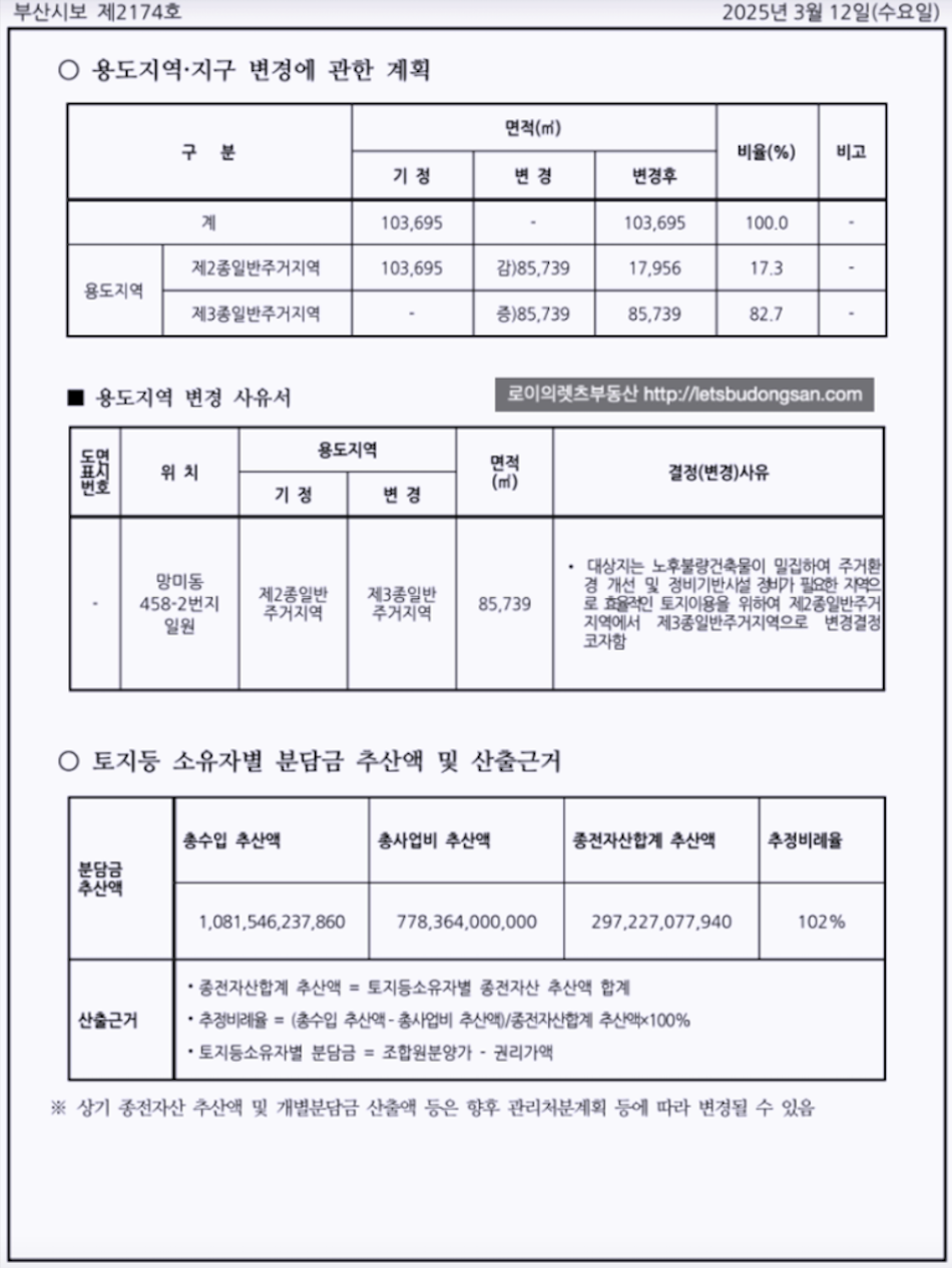 - 2025년 3월 12일 : 정비계획 결정 및 정비구역 지정 고시