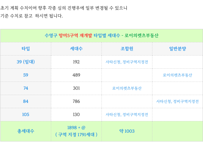 현재 약 1898세대의 수영구 대단지로 계획하고 있고
