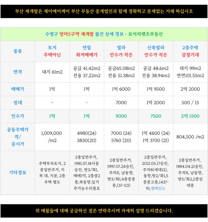 부산 전역 재개발에 대해 궁금하신 사항은 방문 또는 연락주시면 자세히 설명 드리겠습니다.