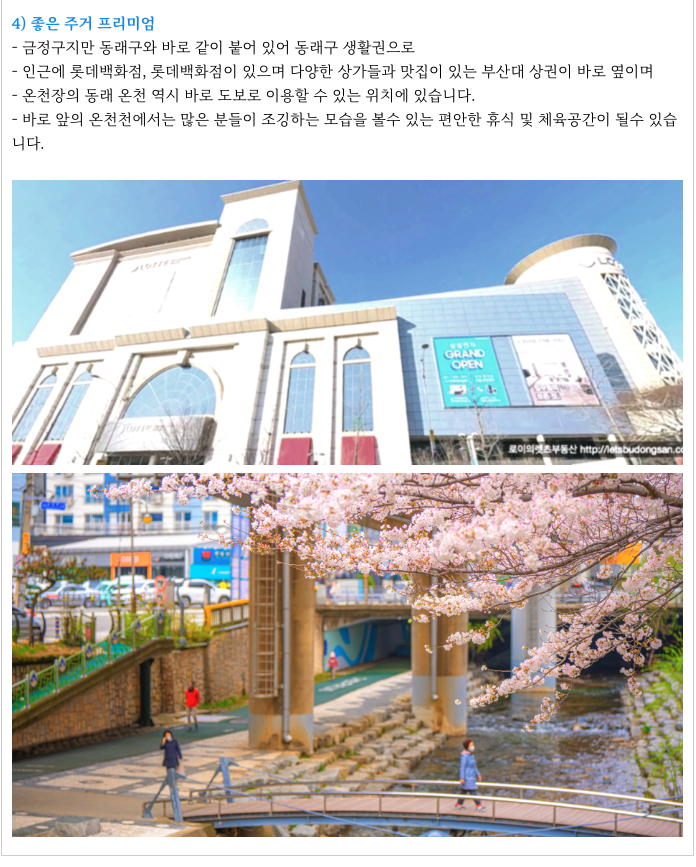 온천 특구 온천장 상권과 부산대 대학상권 역시 도보로 이용이 가능 합니다.