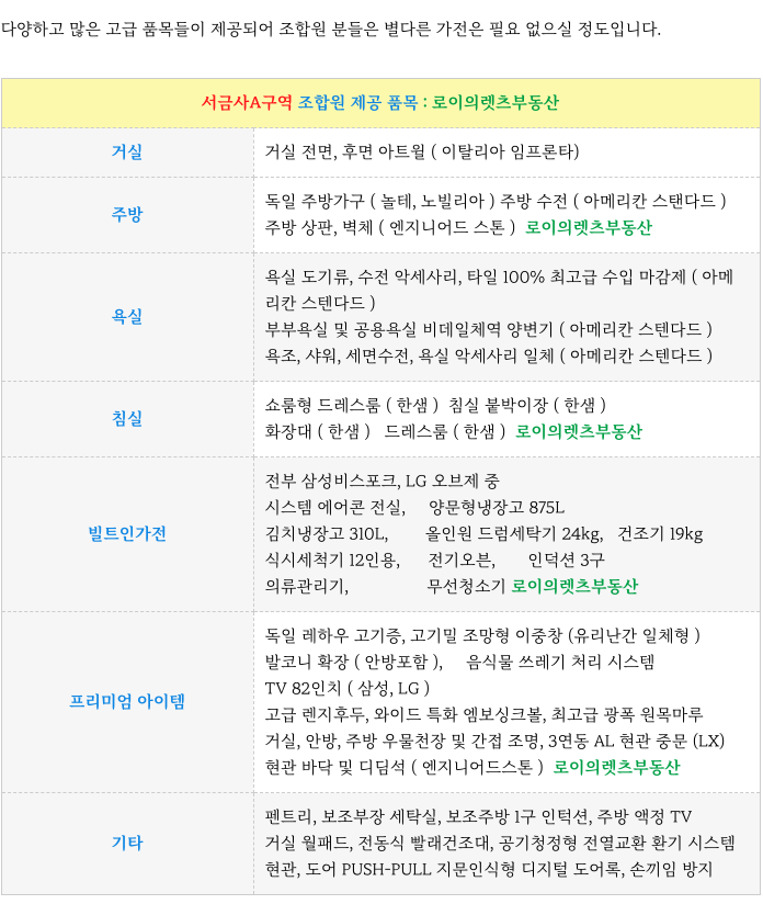 2) 조합원 특별 제공 품목