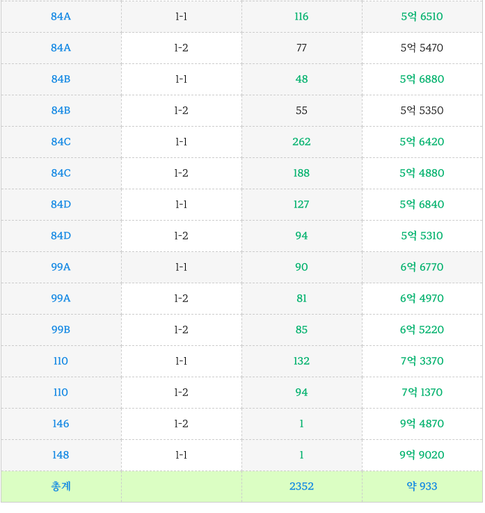 * 타입별 프리미엄 낮은 매물로 정리하였습니다.