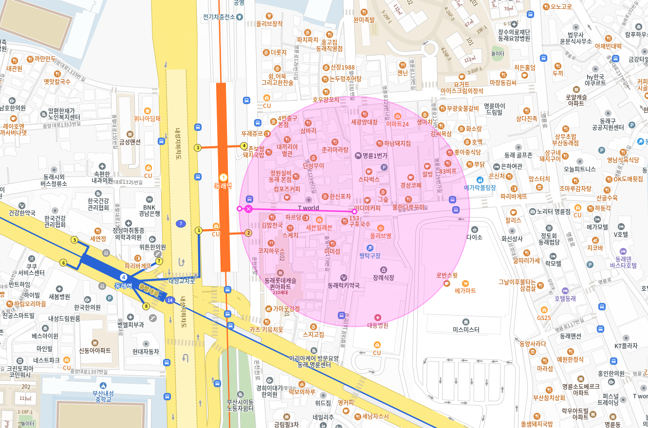 - 동래역 역세권, 명륜1번가 상권 메인 위치
