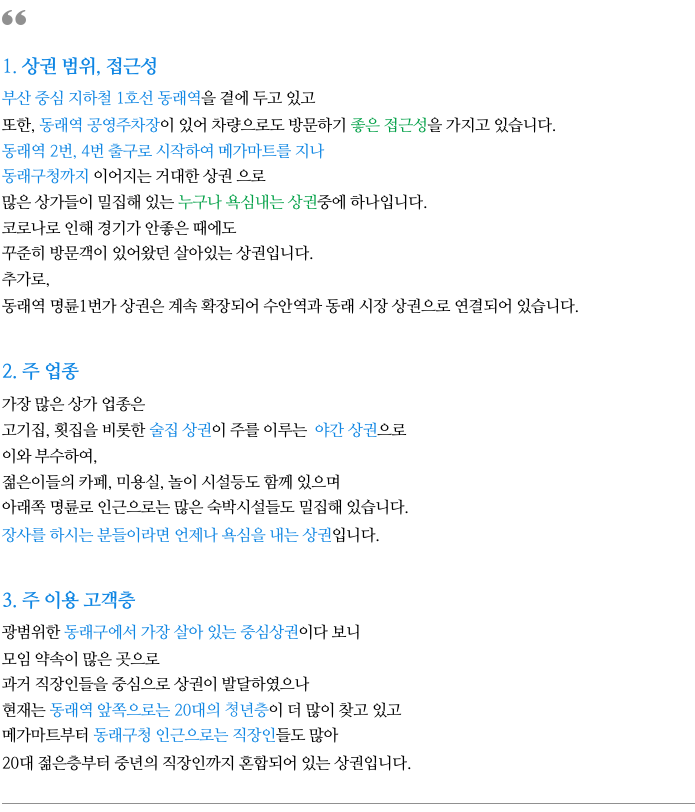 동래역 명륜1번가 상권 특징 간략