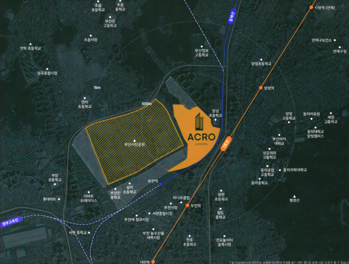 서면과 접한 부산 중심 도심에 위치 + 프리미엄 브랜드 아크로 채택과
