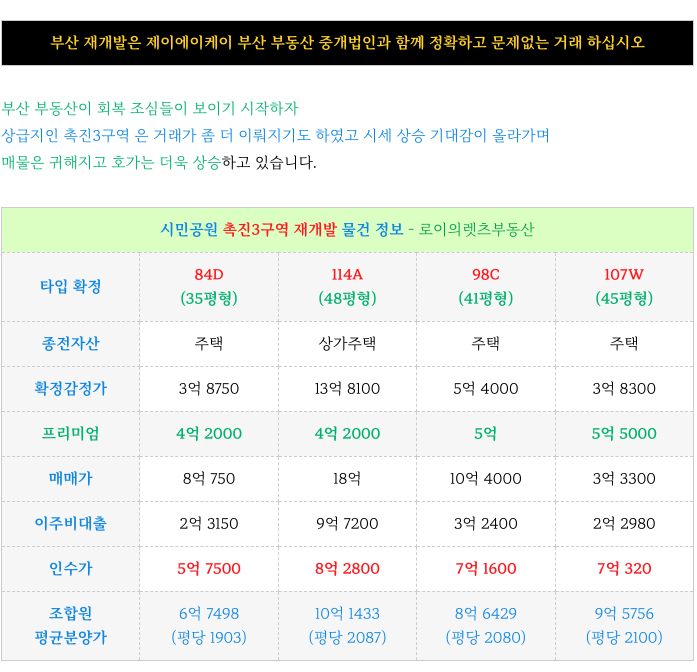 시민공원 촉진3구역 재개발 : 현재 매수 가능한 매물 소개해 드리겠습니다.