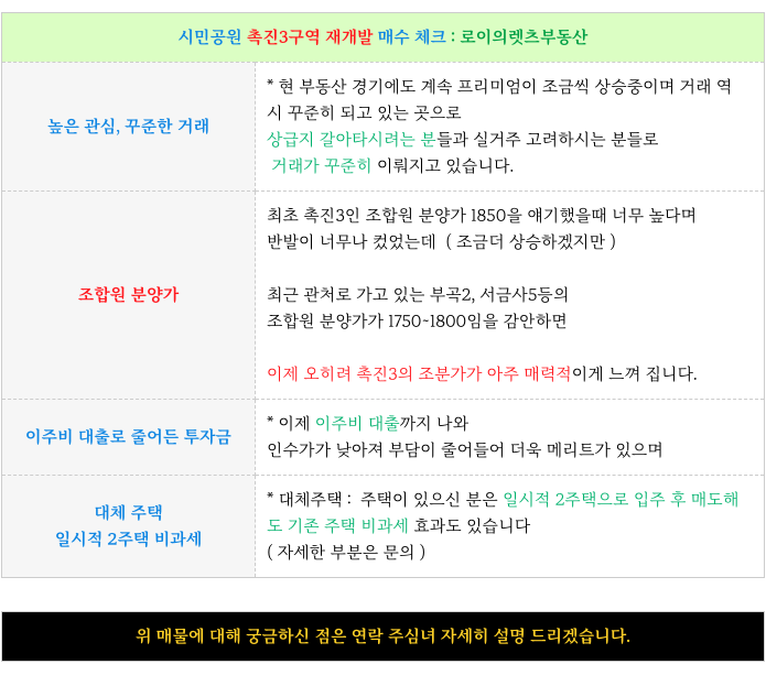 촉진3구역 재개발 : 귀한 매물 정보 & 최근 진행 소식 간략 소개해 드리겠습니다.