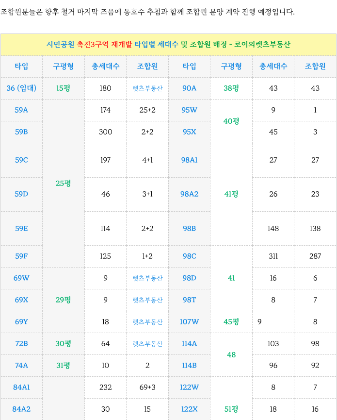 2. 타입별 세대수 및 분양가 체크 : 촉진3구역 재개발 :