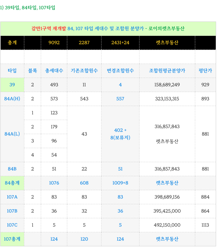 4. 타입별 세대수 그리고 분양가 : 감만1구역 재개발 :