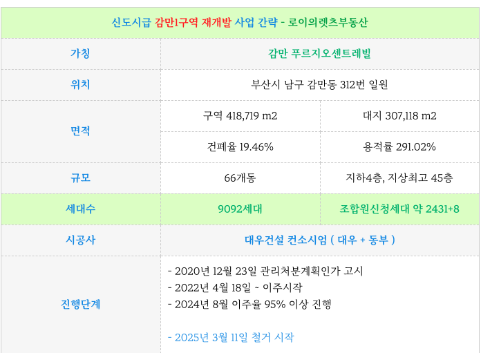 (철거) 감만1구역 재개발 : 최/저+소/액 매물 + 최근 소식, 진행 상황
