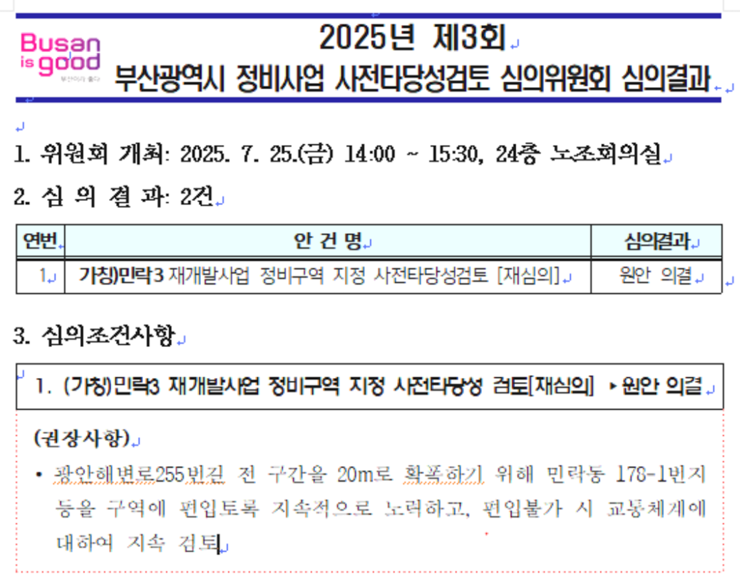 - 2025년 7월 25일 : 정비구역 지정을 위한 사전 타당성 심의 통과